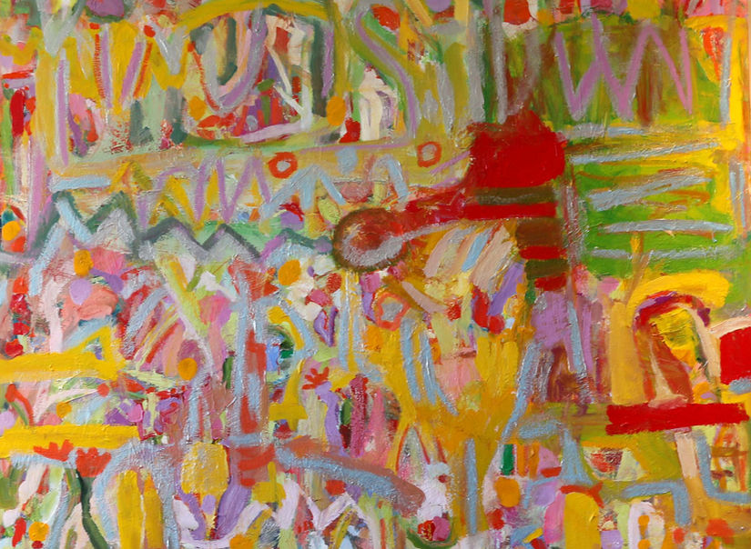 from Mexico. For example, I have taken a rather formal vase and stuffed it with pink tennis racquets and bright silk flowers."
